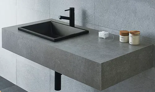 ミラタップの「モルタナ洗面」は、モルタル調の質感が魅力の洗面カウンターです。