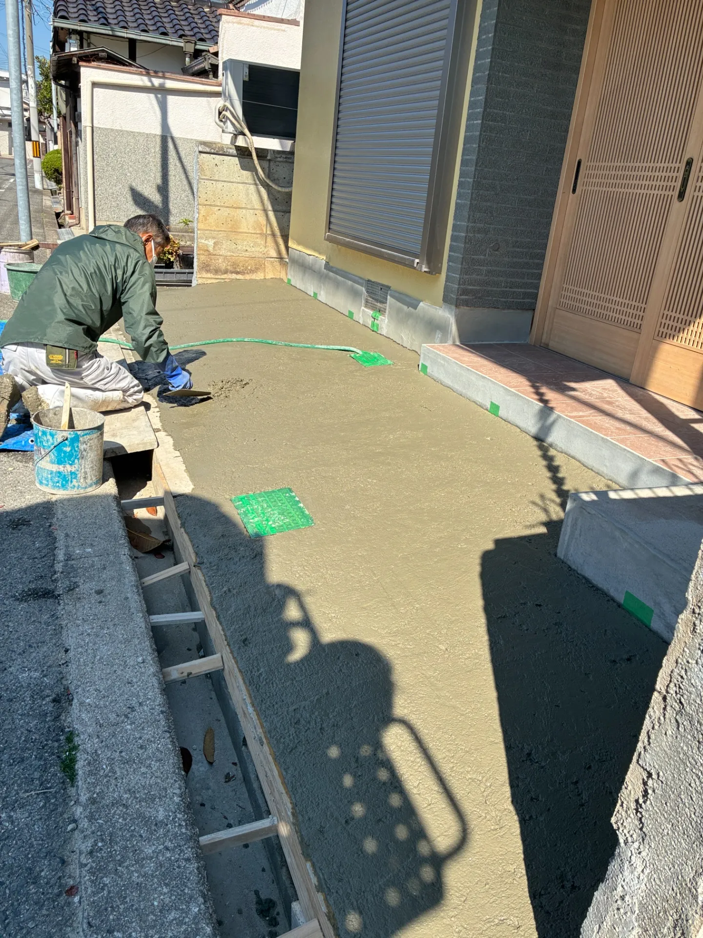 また、水はけを考慮した勾配調整を行い、雨の日でも安心してお使いいただけるよう計画しています。コンクリート打設後は、表面を丁寧に均し、滑りにくく仕上げました。